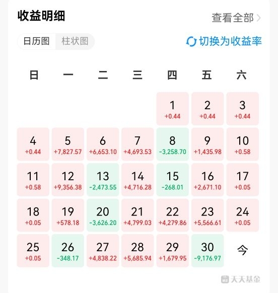 这个月5万多的收益,有3万多来源于黄金有色白银真的是疯涨 了,30号我果断把黄金有色黄金股全部都清空了,当时犹豫了下,但想到风险已经远远大于机会的时候,就果断清仓了。出来观察观察,就是后面大涨 也就少赚几个点而已,但是大跌,就会把利润一下子全回吐出去,所以这个操作还是非常成功的,所以努力,不断复盘。