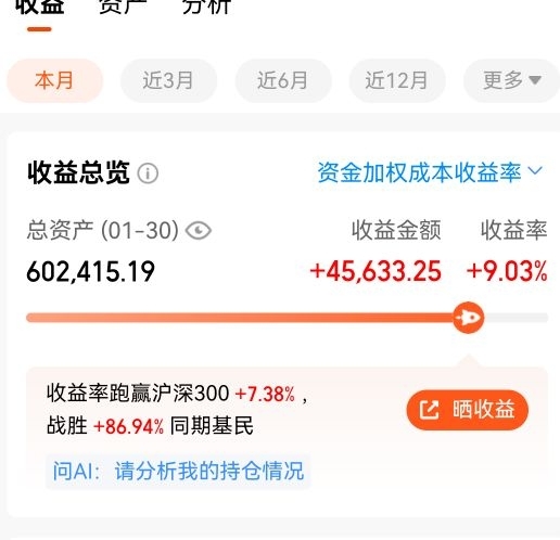 2026年一月账户收益4.5万加上白银溢价赚了5千,一共赚了5万,收益10%