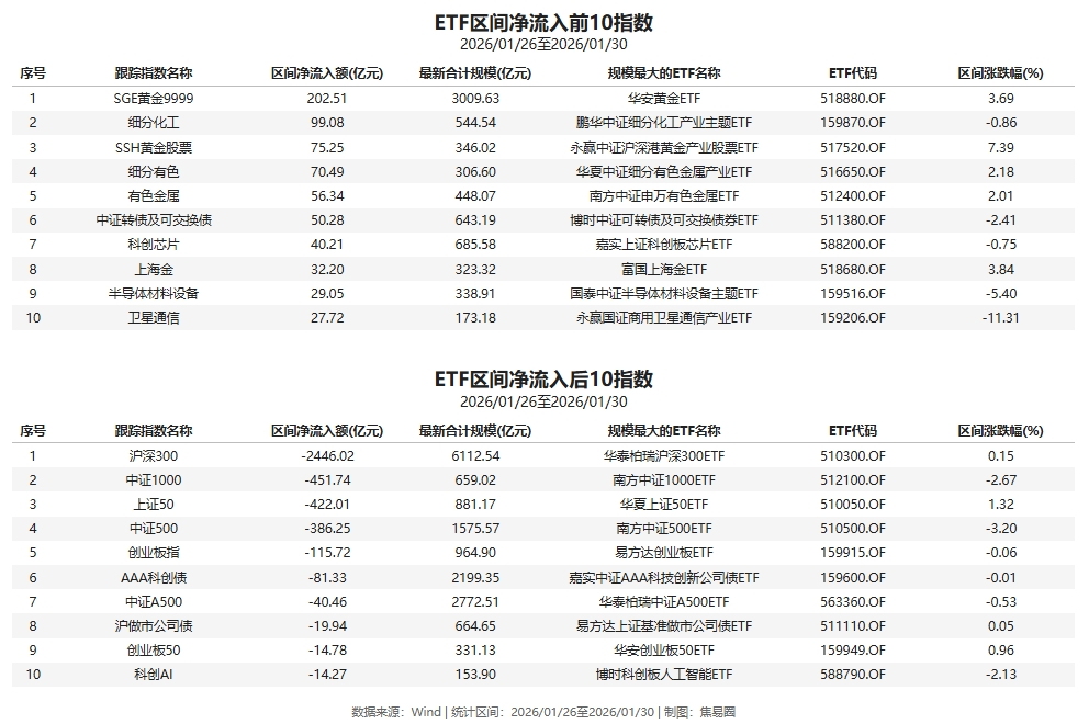 本周ETF净申赎统计黄金ETF净流入超200亿化工连续两周净流入近百亿细分有色、