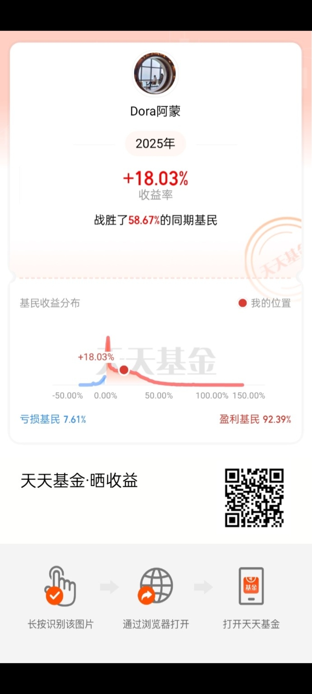 2025年,我的收益情况是18%,我的超额关键词是“稳健跟随”。这一年,我没有追