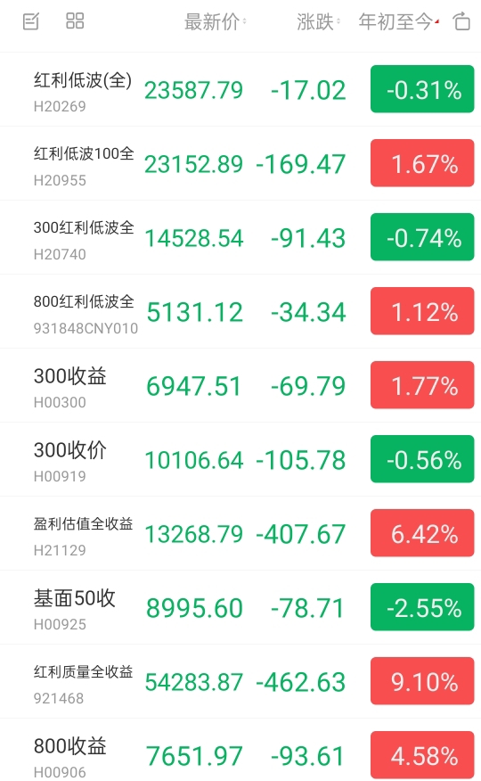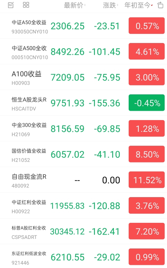 比如, 配置行业龙头指数,中证A500指数收益满满,恒生A股行业龙头指数就亏损了。配置红利方向指数,标普A股红利机会指数收益满满,300红利低波指数就亏损了。