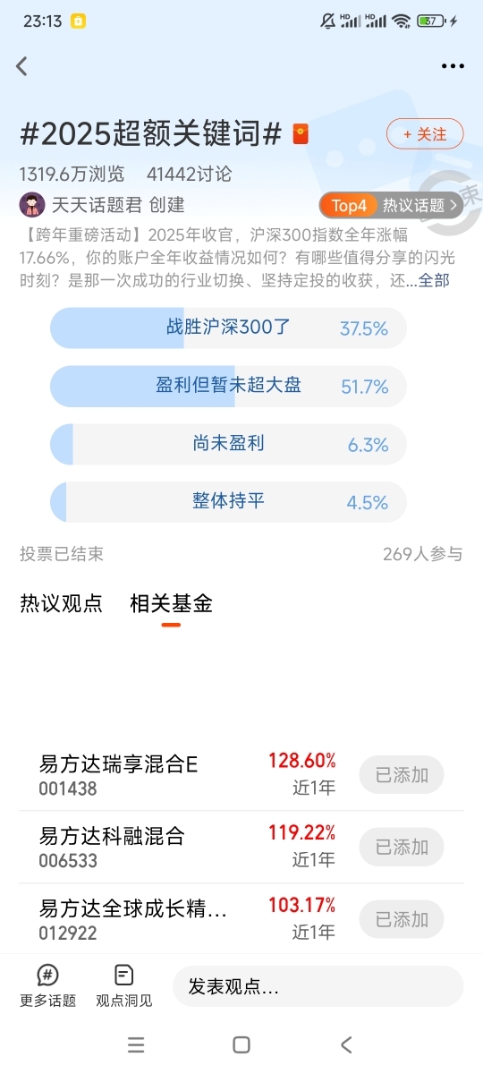 #2025超额关键词#DEEPSEEK出来的时候,我就认定人工智能是个高景气的投资板块。当时有一笔闲钱,我重仓在低点买了人工智能基金,没想到刚买不久行情一下就起来了。我大概赚了50%多才走了,这是一次成功的投资经历,对我的投资信心增强不少。