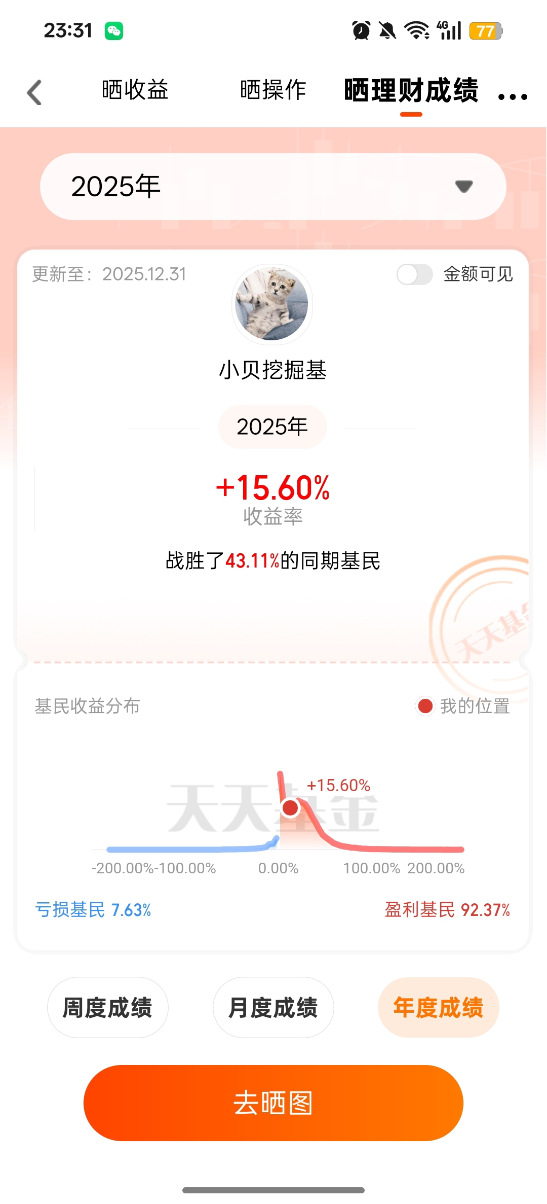 #2025超额关键词# 2025年,我的收益情况是15.6%,我的超额关键词是“坚守纪律”。