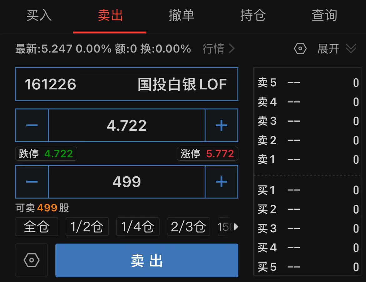 当前白银期货大跌,对白银LOF是大利空,这种情况,我准备挂跌停价的隔夜单,提前排队,看看能不能跑路了。