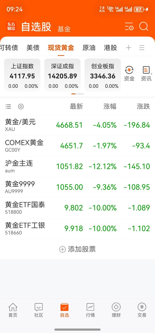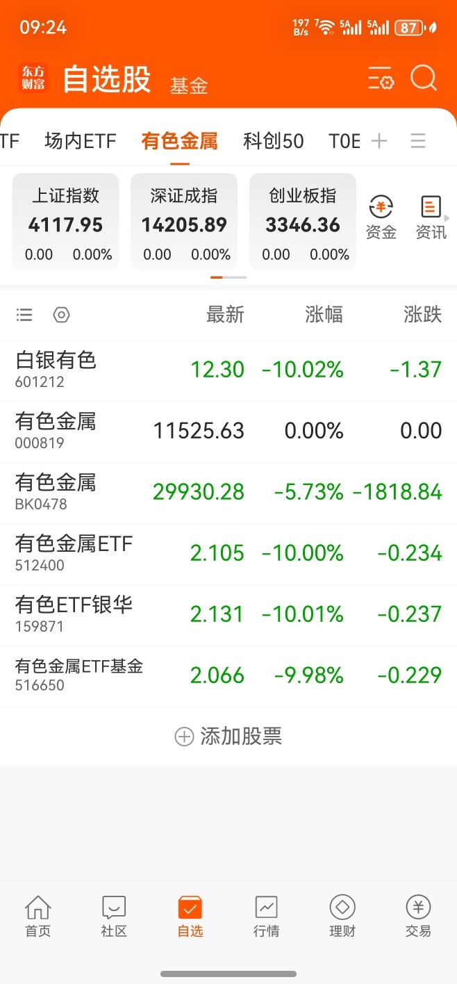 在今天上午9点24分临近开盘的时候,目前观察国内有色金、国内黄金,这些在目前表现都是暴跌表现极差的。