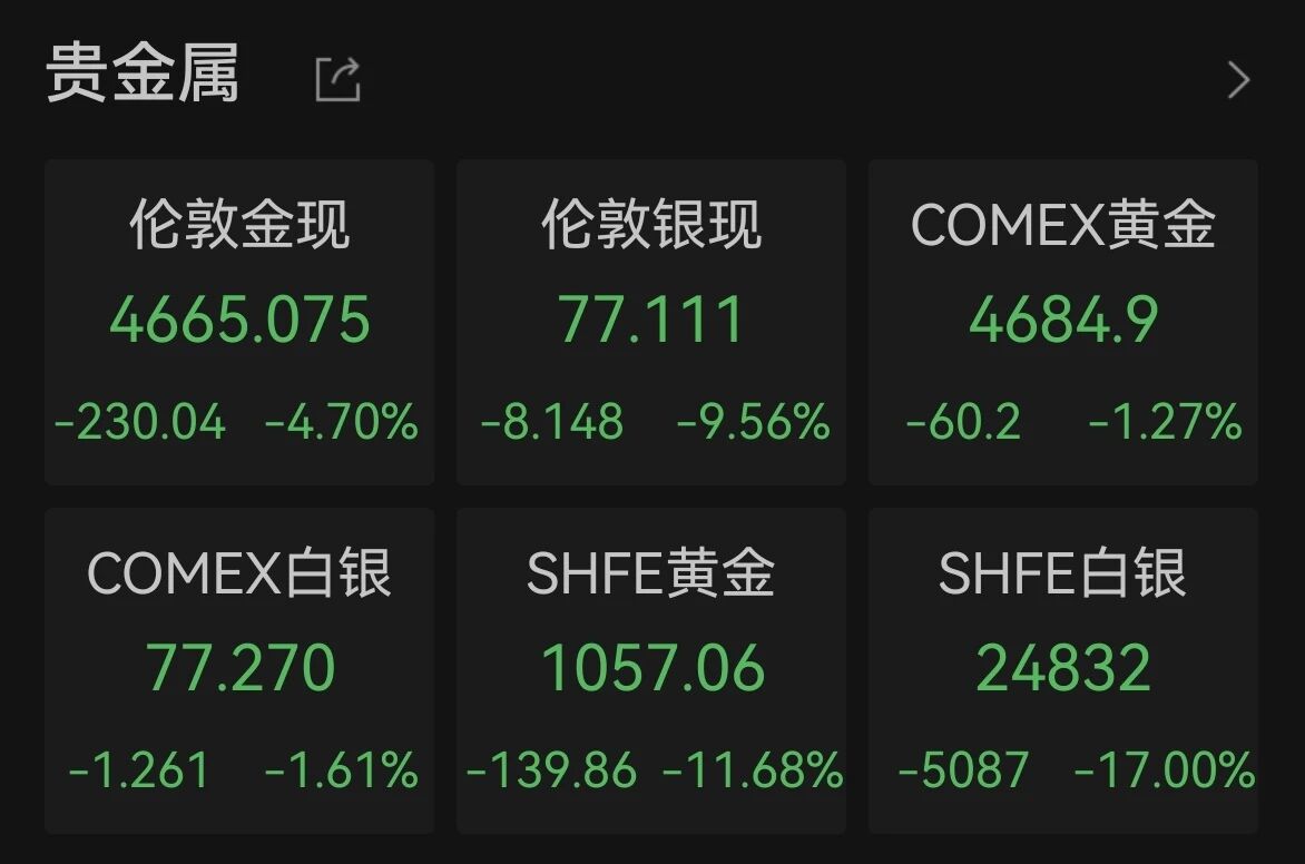 起因还是贵金属市场,下图,亚洲开盘后,金银继续下挫,具体逻辑等,昨晚的周度展望《重磅事件要落地了》,其实都已经解读过了。