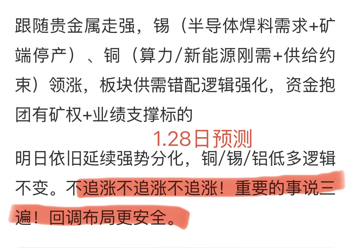 美儿1.28日就提醒大家不要追涨不要追涨!这不,追涨有色金属和黄金的,就被高高挂起了。