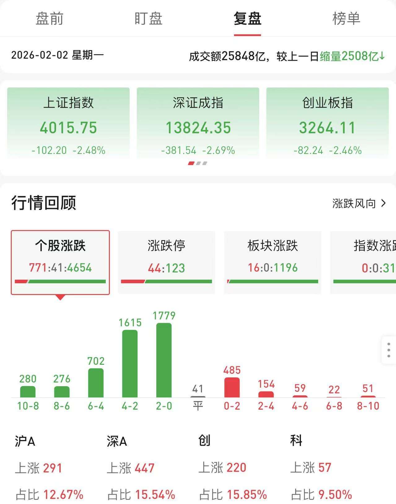 今儿个这日子,麦爸估计不少老铁的心情拔凉拔凉的。二月的第一个交易日,大盘没给咱们发红包,反而甩过来一记响亮的“耳光”。三大指数跌幅全部超过2%,沪指直接杀到了4015点,甚至一度有破4000点的架势。更惨的是金银资源股,前两天还是小甜甜,今天直接变成了牛夫人,多股连续两个20cm跌停,资源股满地找牙。