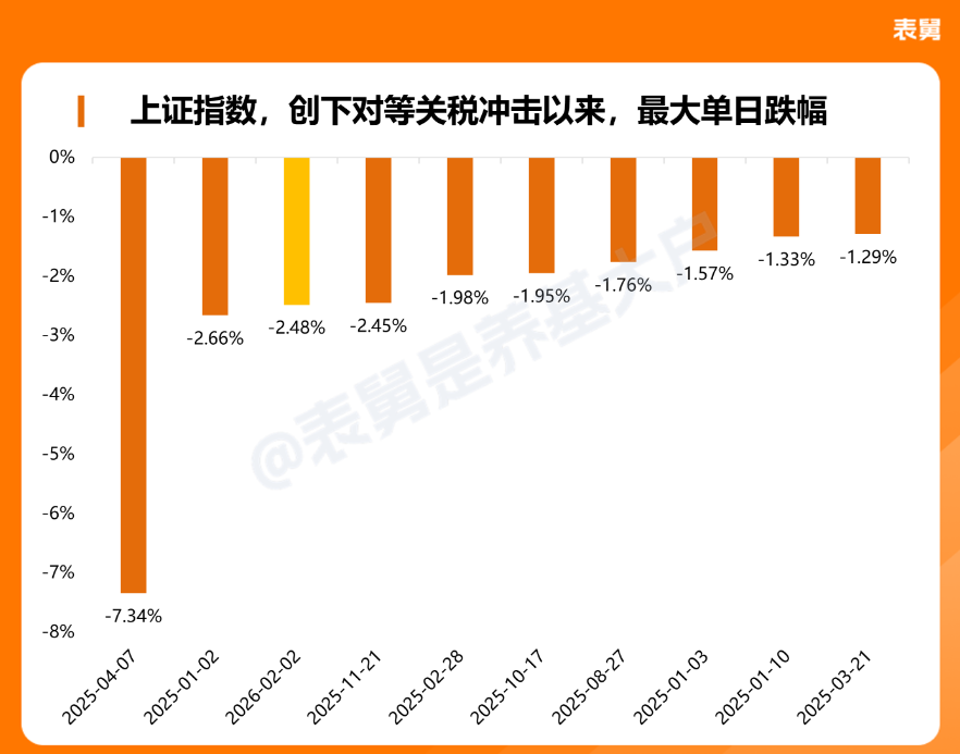 下图,是2025年以来,上证指数跌幅最大的十个交易日,今天仅次于2025年初、以及去年4月7日的对等关税当天,可见跌幅之大。