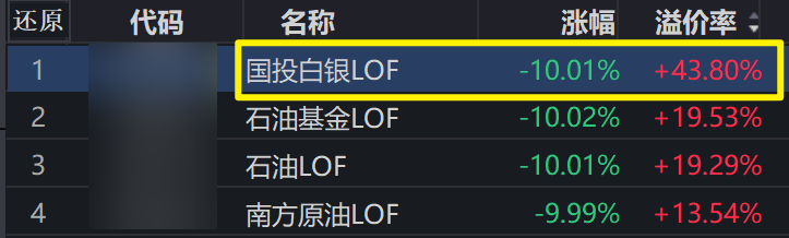 昨晚,咱们提到,金银巨震的一个结果是,要关注周一白银LOF等产品大幅杀溢价。