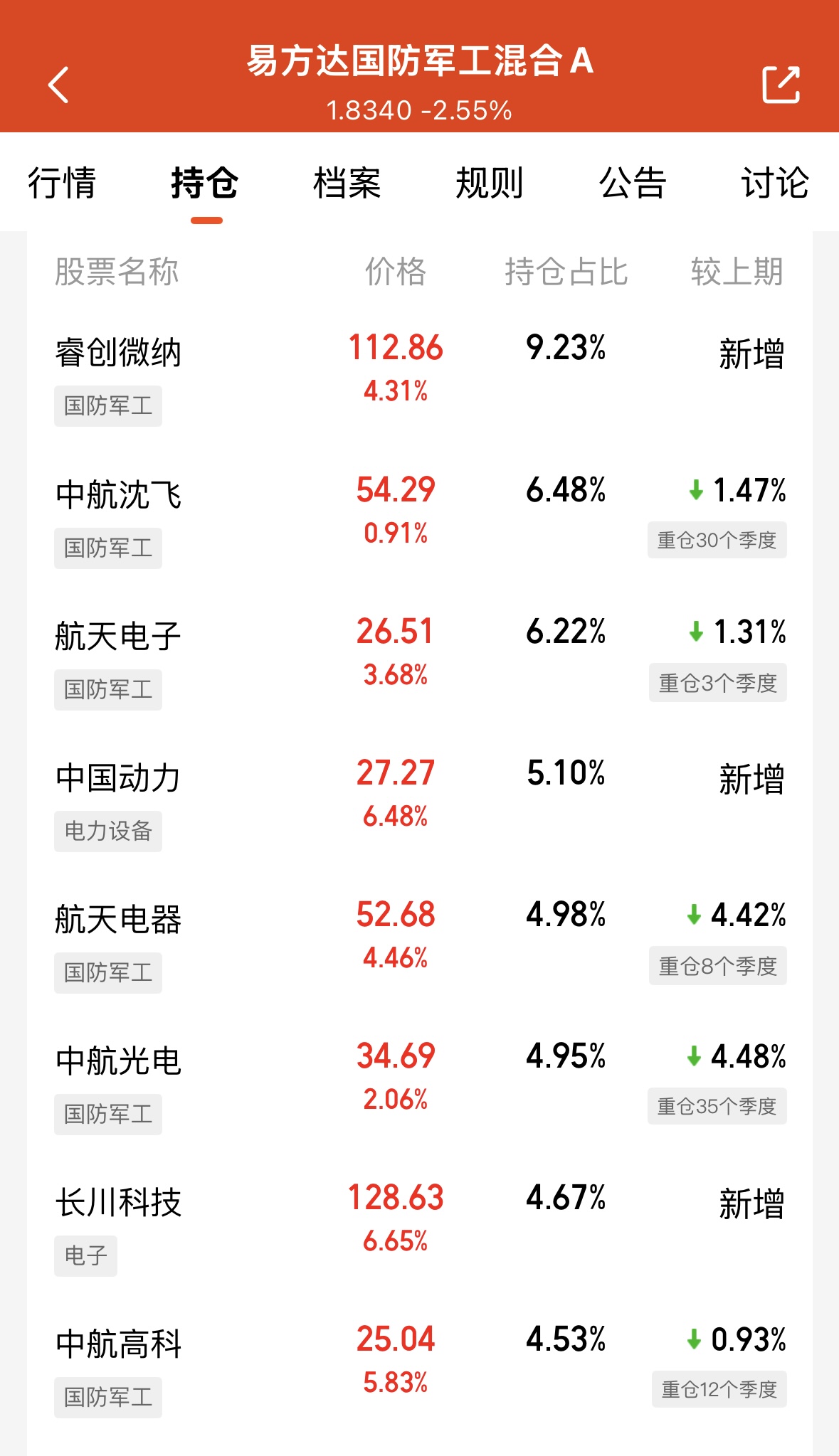 易方达国防军工以航空、航天装备为核心持仓,守住国防高景气基本盘,同时布局商业航天相关企业,兼具防御性与成长弹性。