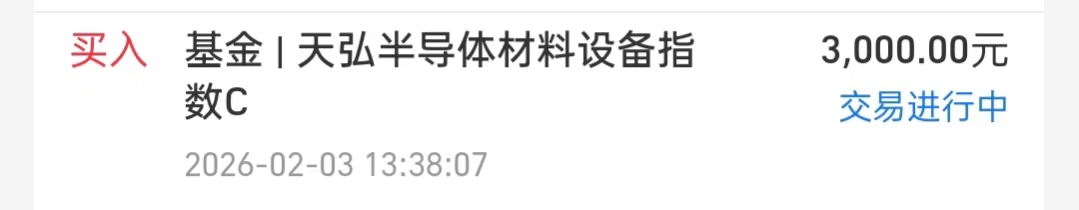 上车半导体材料设备基:$天弘半导体材料设备指数C(OTCFUND|021533)$,+3000元。