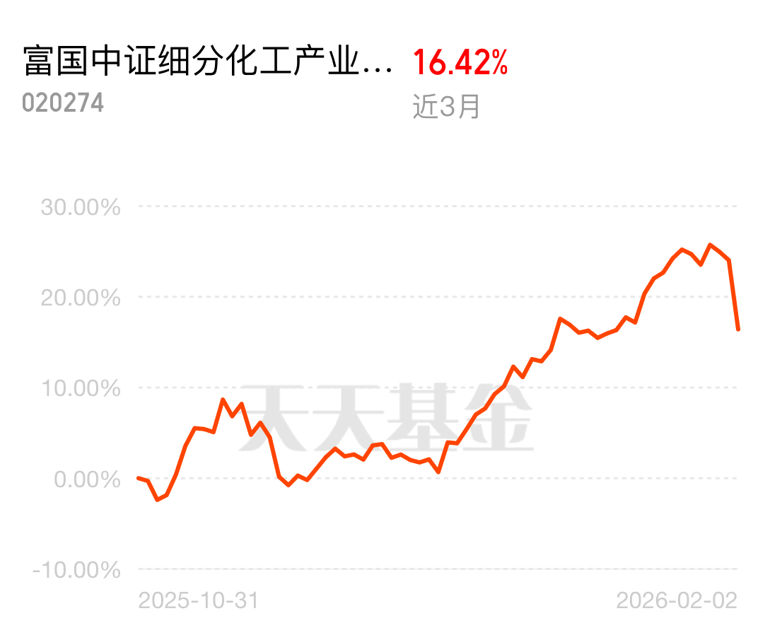 #黄金白银双双回调 贵金属后市何去何从?# 短期波动别怕,关键看底层逻辑硬不硬富国中证细分化工产业主题ETF联接C跟踪的指数覆盖了化学制品精选、磷化工、氢能等多个高景气子行业,近3个月16%的涨幅背后,是开工率提升和嬴利改善的支撑,不是靠讲故事,而是实打实的产业数据在推动,适合分步配置、长期陪伴。