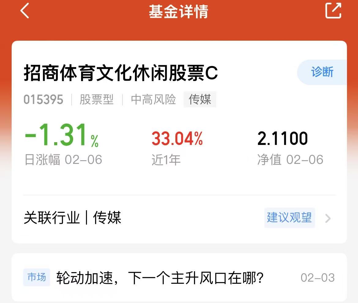 今日大盘迎来反弹啦,三大指数高开高走,盘面红彤彤的,AI应用表现优秀,春节档票房、文旅消费回暖,政策持续加码文化数字产业,AI赋能内容生产、营销与互动。$招商体育文化休闲股票C(OTCFUND|015395)$持仓聚焦AI应用落地标的,成长属性强,近一年收益率33.04%,业绩出色,我继续看好未来趋势。$银华集成电路混合C(OTCFUND|013841)$ #春节AI大战!千问发动30亿奶茶功势# #八部门重磅方案!中药产业迎五年机遇期#