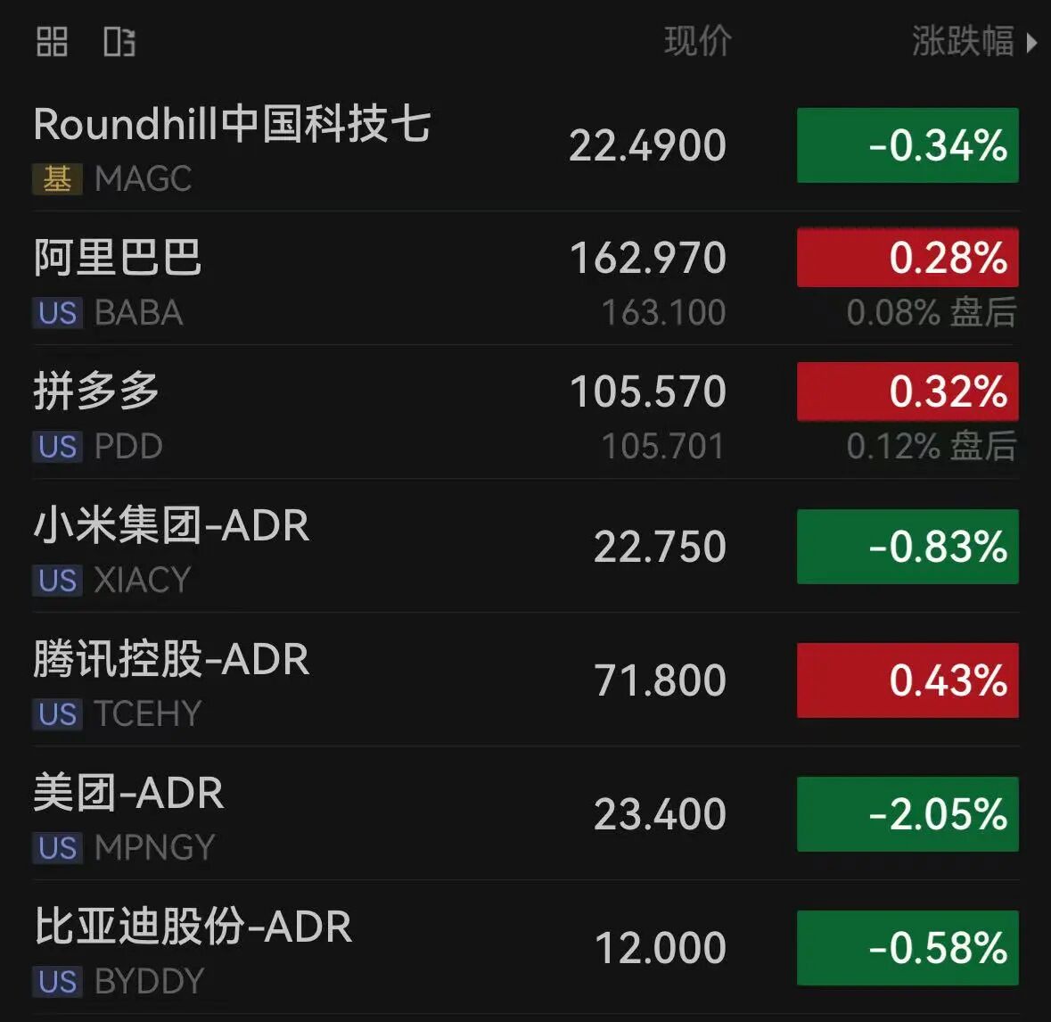 2、再看下昨晚美股的“中国资产”的表现。