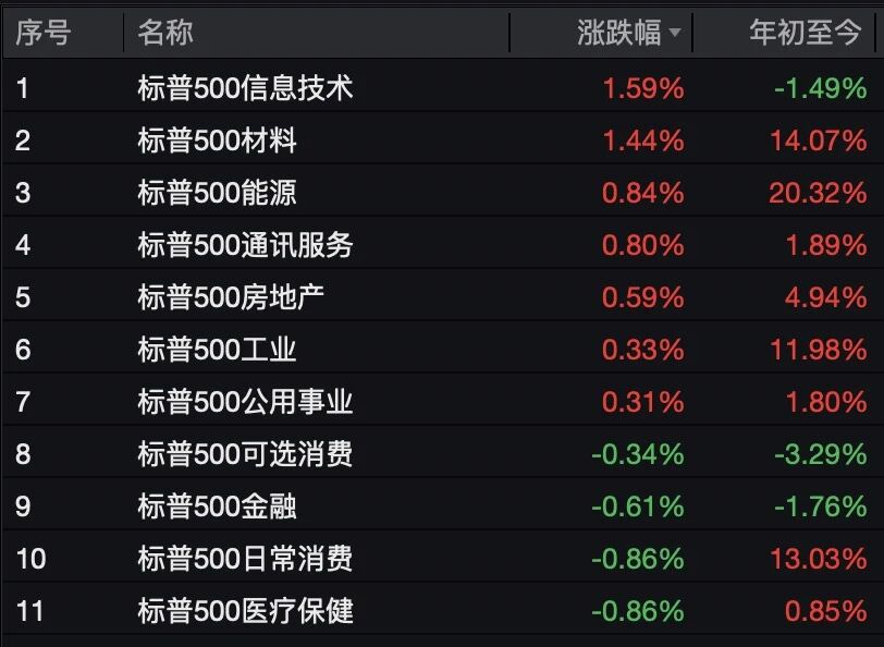 昨晚,美股科技股继续领涨,11个一级行业中,信息技术大涨1.6%。