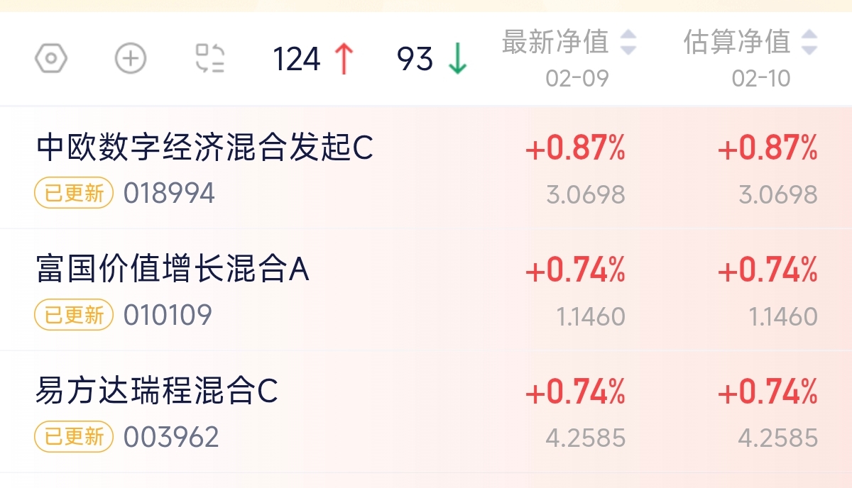 $中欧数字经济混合发起C(OTCFUND|018994)$今天上涨0.87%