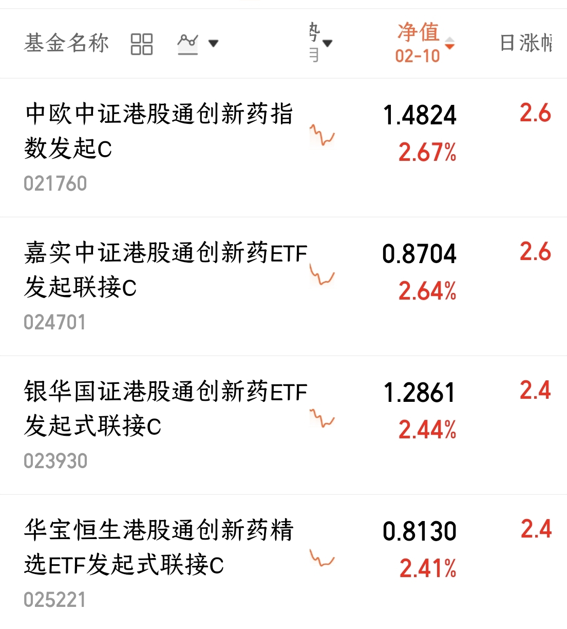 $华宝恒生港股通创新药精选ETF发起式联接C(OTCFUND|025221)$今日上涨2.41%