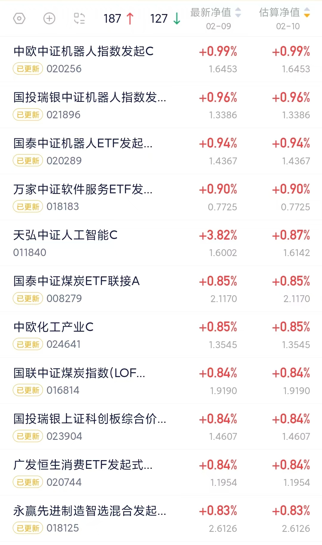 $天弘中证人工智能C(OTCFUND|011840)$今天收涨0.87%。