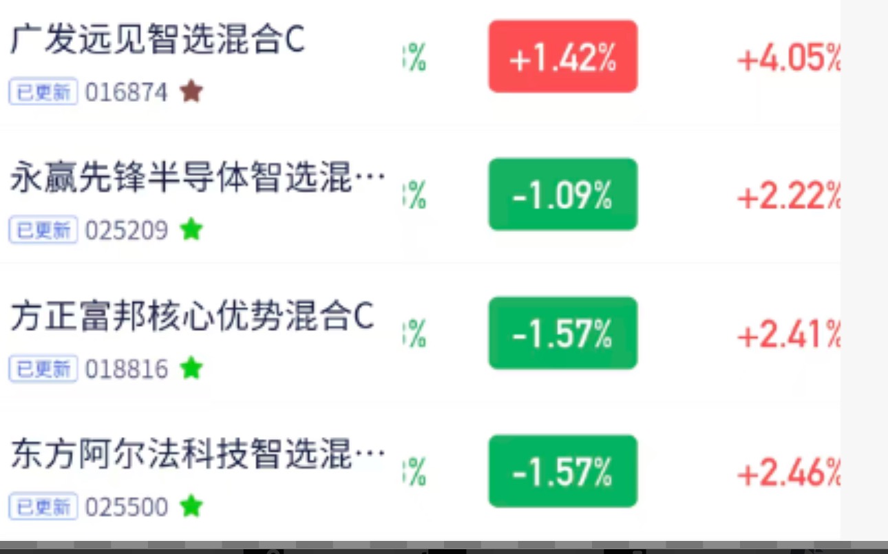 #下个风口赛道是谁?# 今天广发远见智选C这涨的1.42%,2天快6个点,没让我失望。这种混合型基金最考验基金经理的选股眼光。持仓的普冉股份、星环科技这些,都是在各自赛道有护城河的。目前整个半导体产业链正在经历周期性复苏,叠加AI带来的硬件升级需求,现在的上涨是有支撑的,不是瞎炒作。我还是打算继续拿着,毕竟好的科技基确实难找。$广发远见智选混合C$