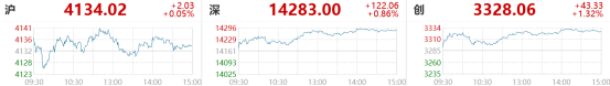 今天,A股三大指数震荡走强,集体收涨,创业板指步伐较大。个股涨跌比为2107:3273,红方占比近4成。