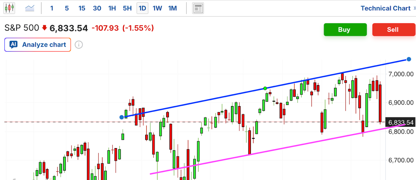 当前市场环境表现为“高波动、高分化”。标普 500 跌破 50 日线是一个重要的技术警示信号。