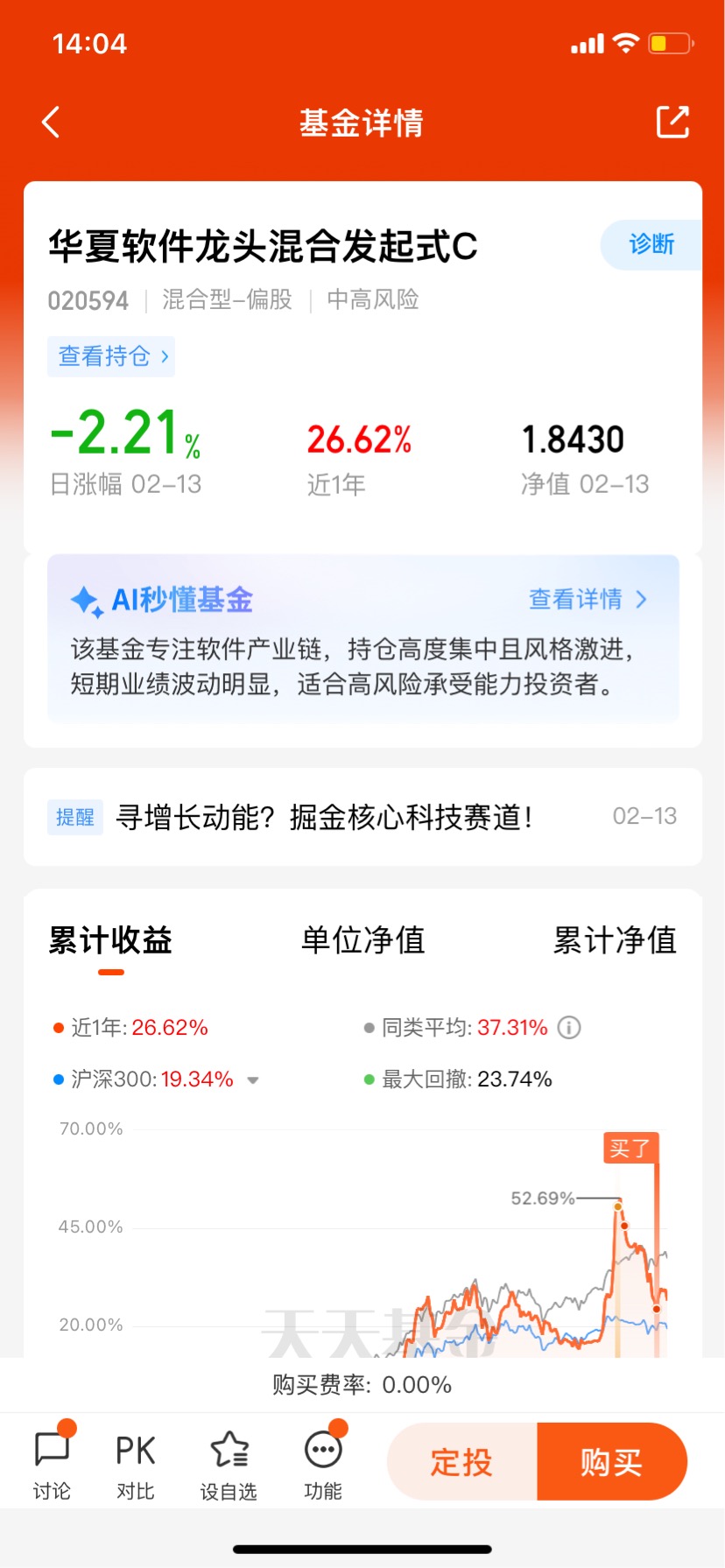 当时市场还在犹豫——AI热潮会不会只是昙花一现?算力基建的投入是否已经透支?但我却在那时坚定地通过定投加仓了$华夏软件龙头混合发起式C$