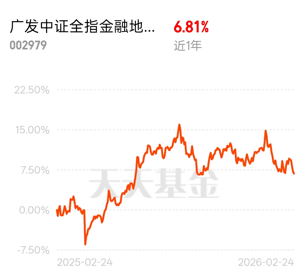 #我在天天基金理财# 最近地产圈都在传上海要大动作,内环外社保放宽这招很关键。 这不仅是买房的事,更反映了高层稳增长的决心。广发中证全指金融地产联接C这种产品,刚好把金融和地产这两大支柱一网打尽。地产回暖带动估值,银行板块负责分红收息。在目前这种不确定的市场里,这种有实物资产和利差支撑的行业,反弹起来底气更足。别等涨上去了才拍大腿,现在这种无人问津的时候,往往才是布局的逻辑起点。$广发中证全指金融地产联接C$