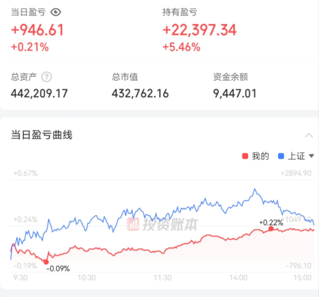 今天的可转债均价来到了127.47元,溢价率52.25%,均价稍微上涨0.2元。今天的指数震荡上涨到了下午2点30的3310点左右就开始回落,最后半个小时的回落基本没有拉升的感觉。我的账户也是挺有意思,最低点在早上10点左右,最高点在下午2点30左右,都是开盘收盘前的半个小时。今天账户上涨0.21%,继续跑输了大盘,账户大赚946元。今天的操作不多,主要是为了凑三个套利的钱,卖出了一些中证800指数基金和一签存的兴业转债,兴业转债去年8月份买的,成本在107左右,本来是作为债券持有,目前是赚了10块钱一张。今天的拖拉机火力全开,三个高溢价指数港股小盘LOF(161124)溢价67.89%、嘉实黄金LOF(160719)溢价9.54%、黄金LOF(164701)溢价4.82%,我都是开足马力搬运。特别是港股小盘LOF,基本没有亏损可能,可以说免费送钱。今天也卖出了上周套利买入了嘉实黄金LOF,收益基本在12%-14%之间,三天时间这个收益还是不错的。