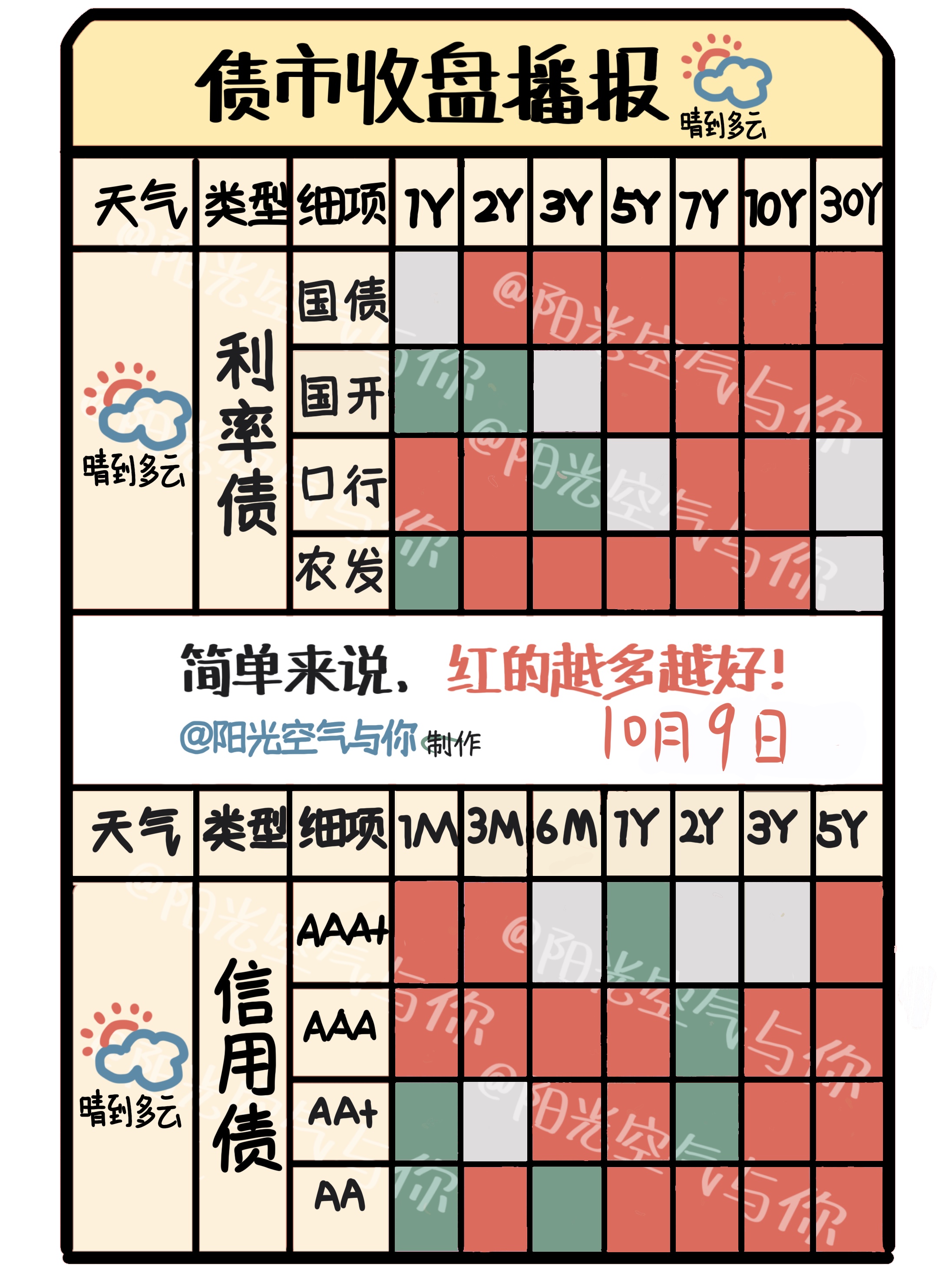 利率债和信用债都是晴到多云,同业存单则是多云。上证指数上涨1.32%,中证转债上涨0.48%,个股上涨约五分之三,局部行情强势,距离普涨行情还差一些,今天难得股债行情都还行!