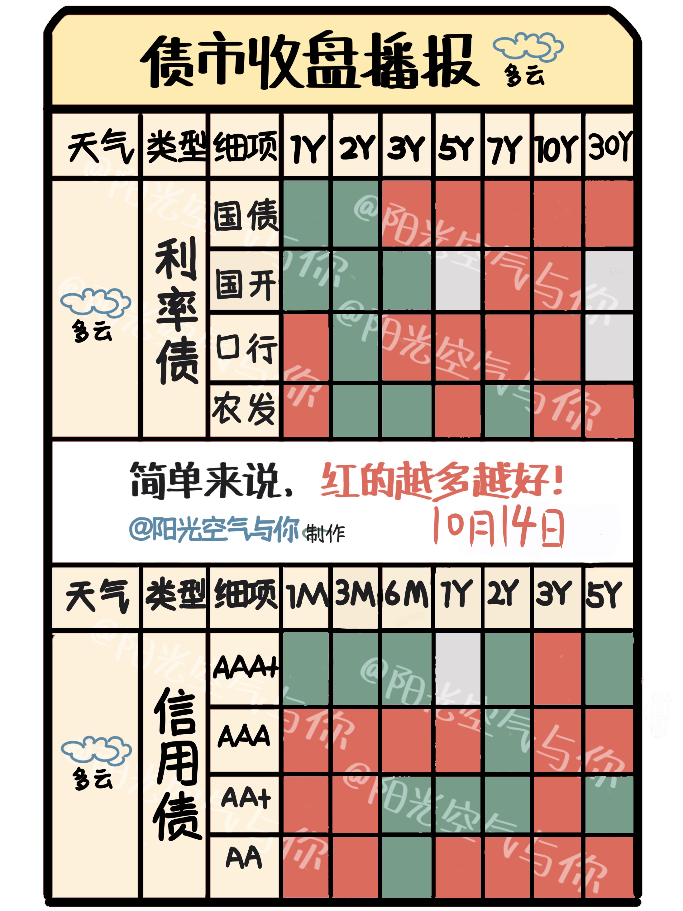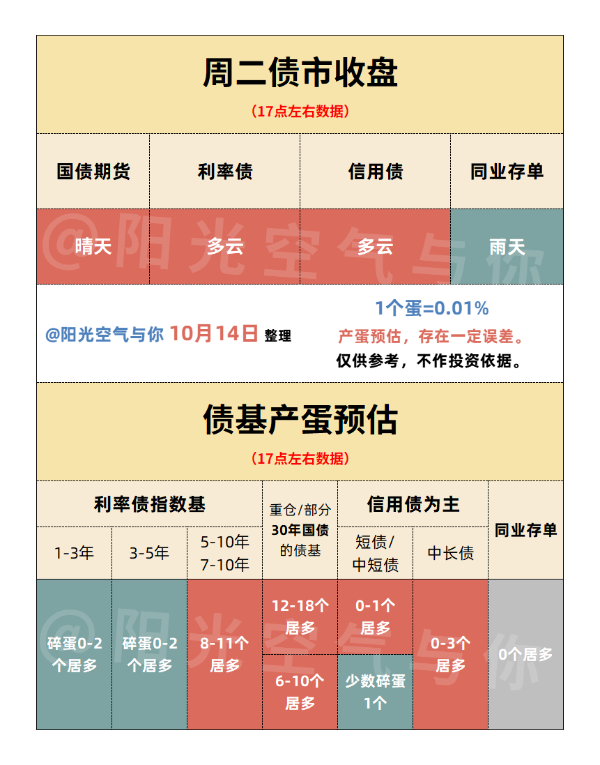 个人债基策略:《10.14债市两点半丨利率债局部翻红,稳住了?加仓这个! 》(点击蓝字可阅读)