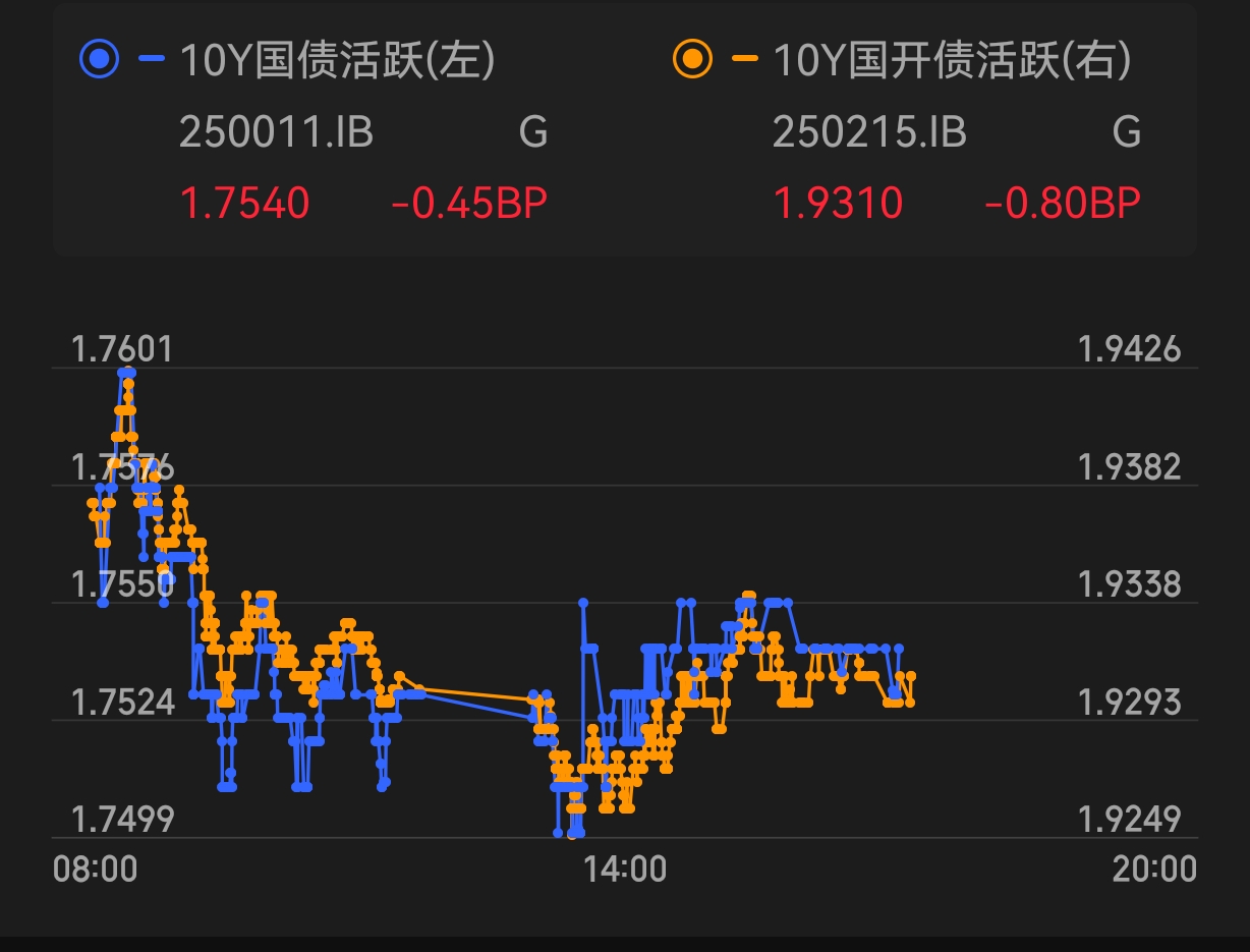 今天债市行情还可以,虽然10年期国债活跃券收益率下行幅度不大,但是30年国债活跃券收益率下行2BP左右,算是局部晴天了。