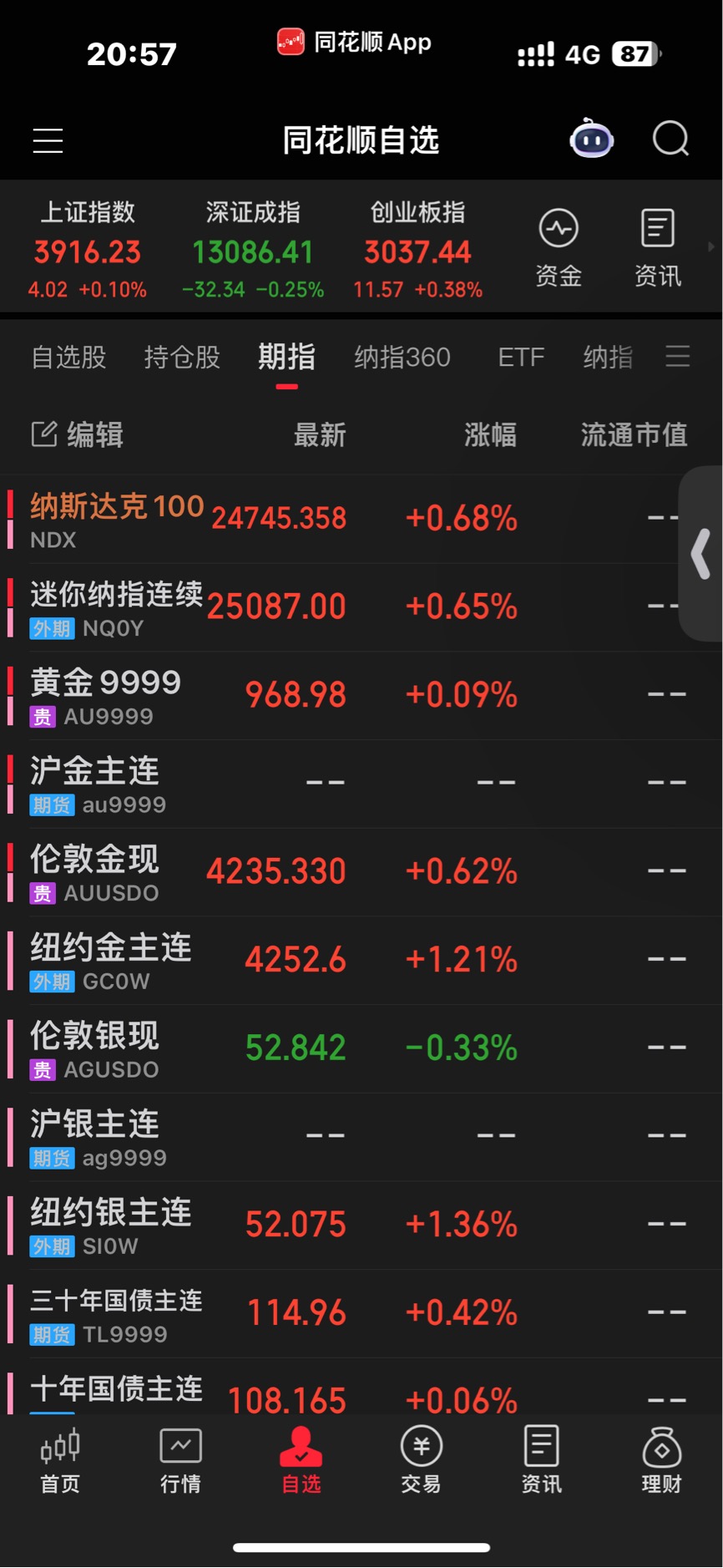纳指修复关税跌幅,持续定投,黄金白银期货持续大涨,一旦见顶,场内清仓