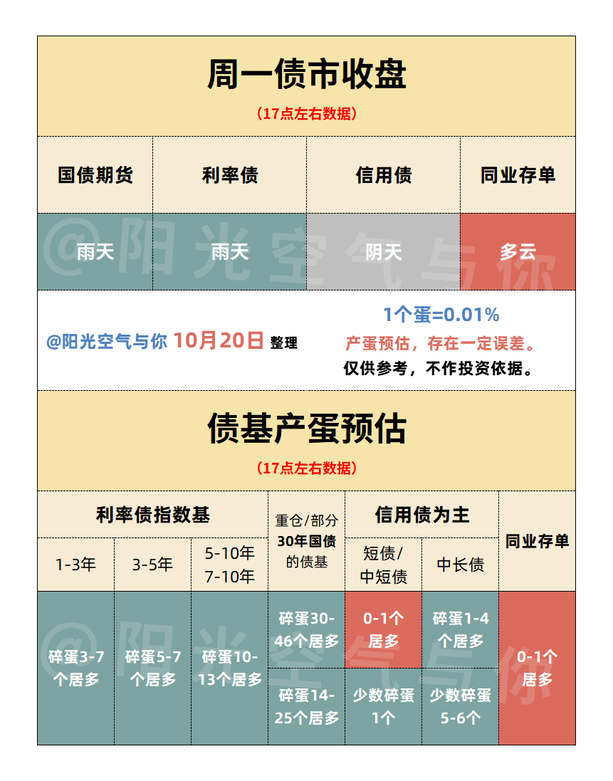 10.20债市收盘丨双债阴雨连绵,碎蛋这些?