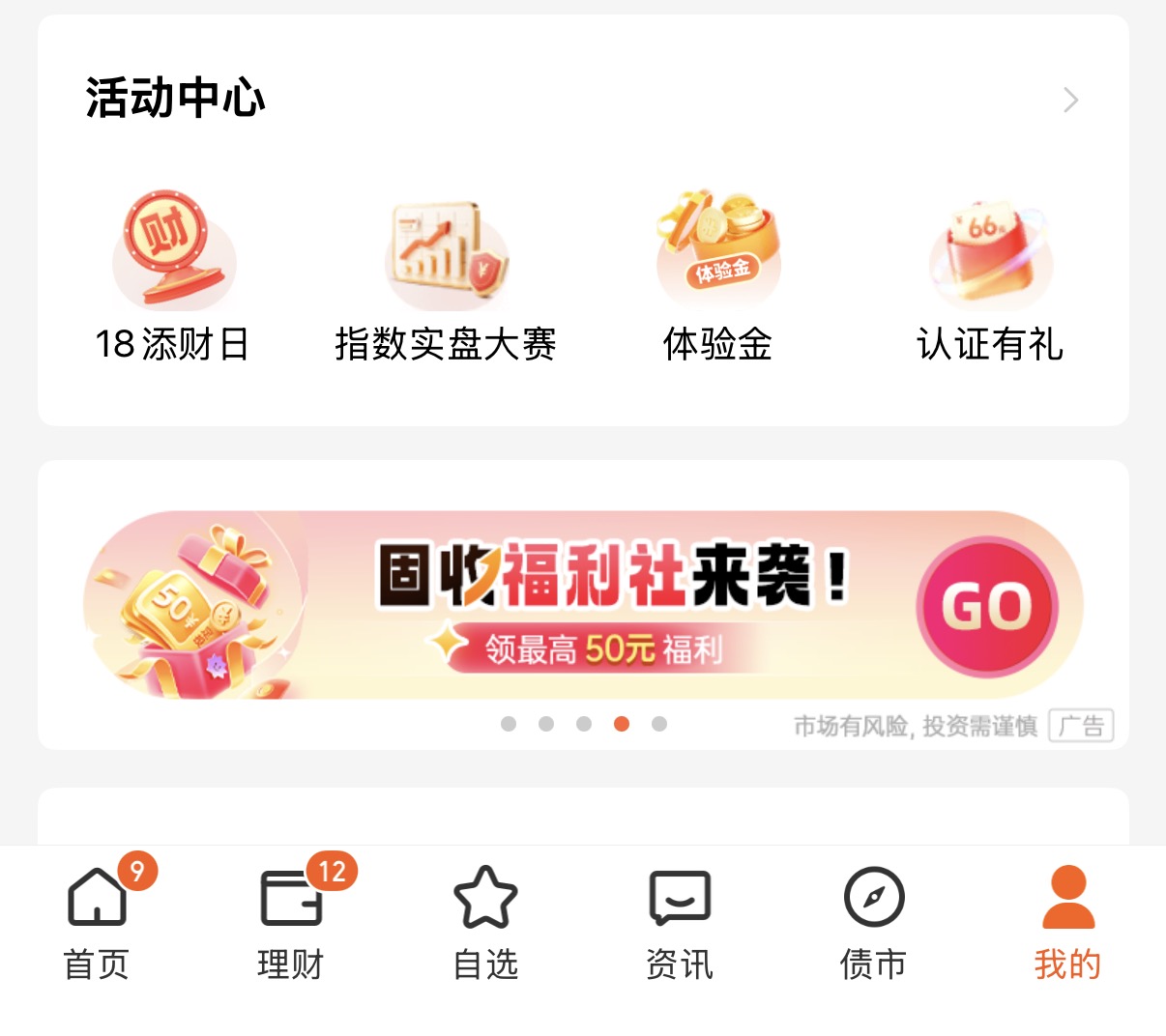 最近天天基金上线了固收基金的福利活动,通过天天基金APP-我的(下拉到)-活动中心位置(下方),在滚动横幅中找到“固收福利社来袭”入口,