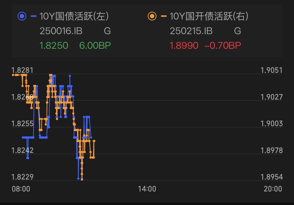 今天债市表现还是可以的!10年期国债活跃券收益率应该是换券了,所以看10年期国开债活跃券收益率会更符合实际情况,目前是下行的!