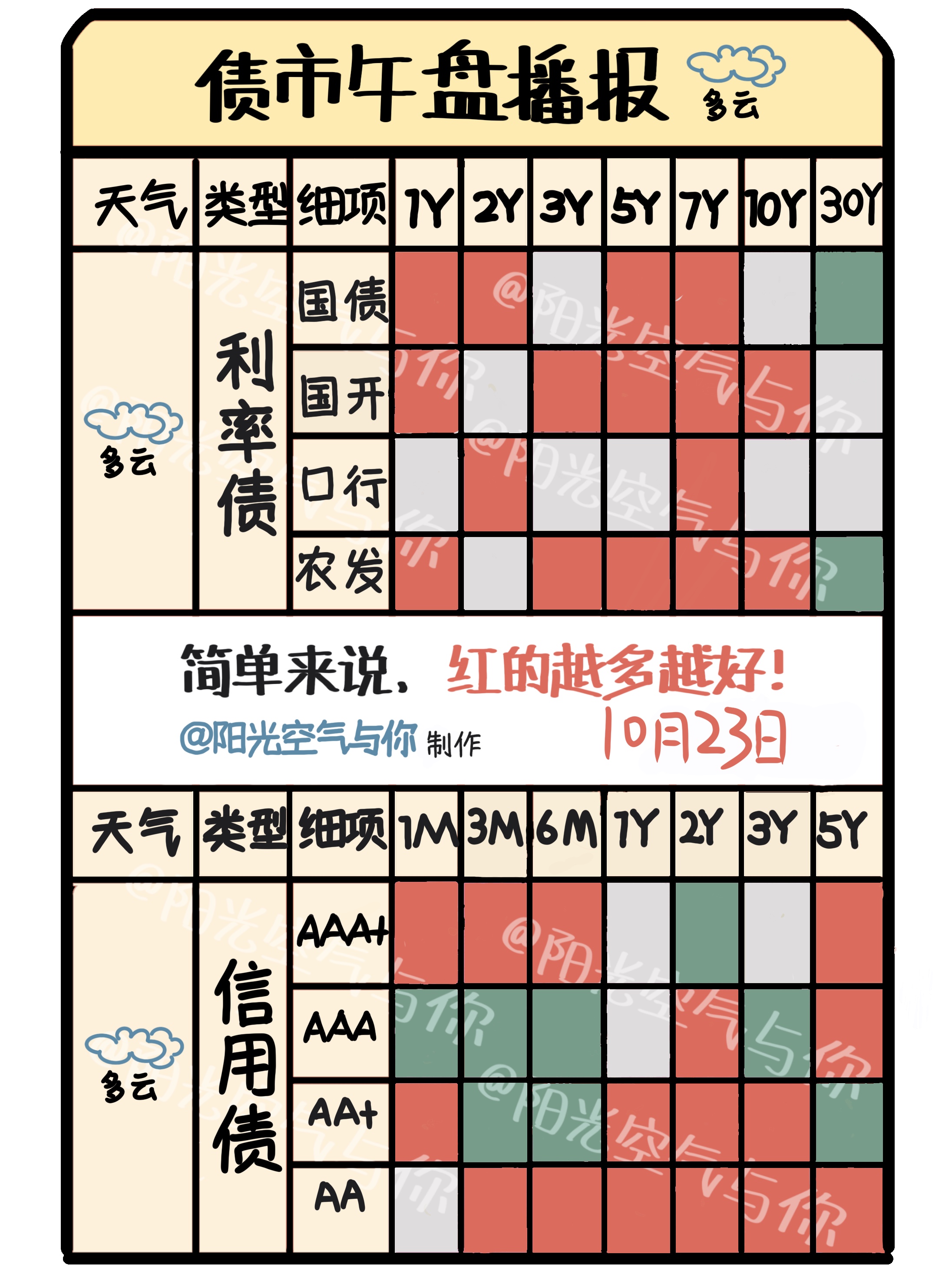 目前信用债晴到多云,利率债和同业存单都是多云。A股市场回调,上证指数上午收盘报3888.08点,也是有点神奇,个股下跌接近五分之四,该来的总是要来的,今天股落债起。