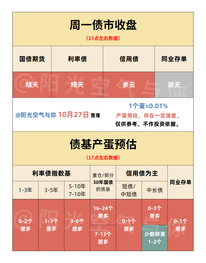 个人债基策略:《10.27债市两点半丨股债齐涨,把握配置机会?加仓这个! 》(点击蓝字可阅读)