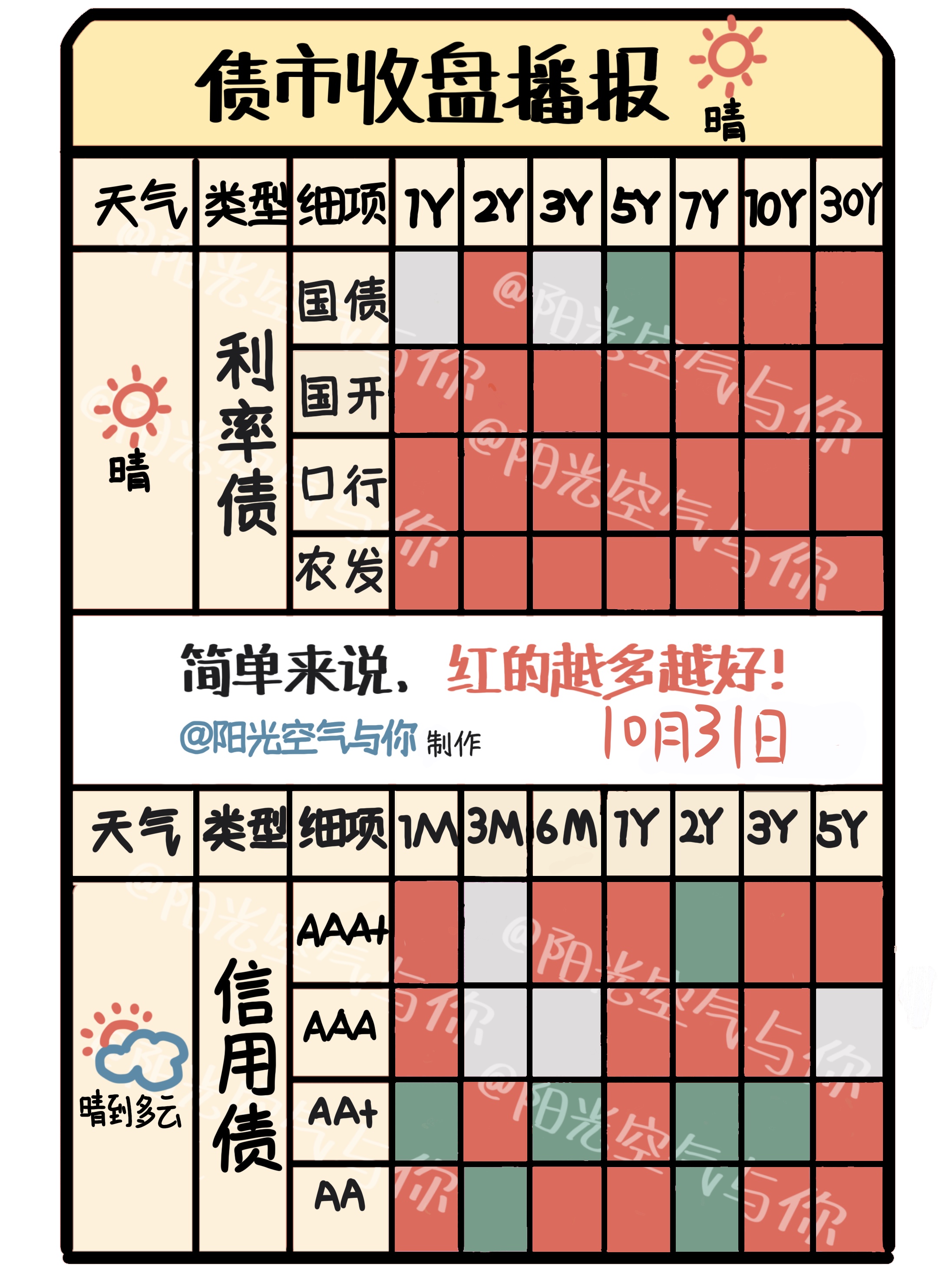 个人债基策略:《10.31债市两点半丨晚霞似火,避险情绪来了?加减仓提醒! 》(点击蓝字可阅读)