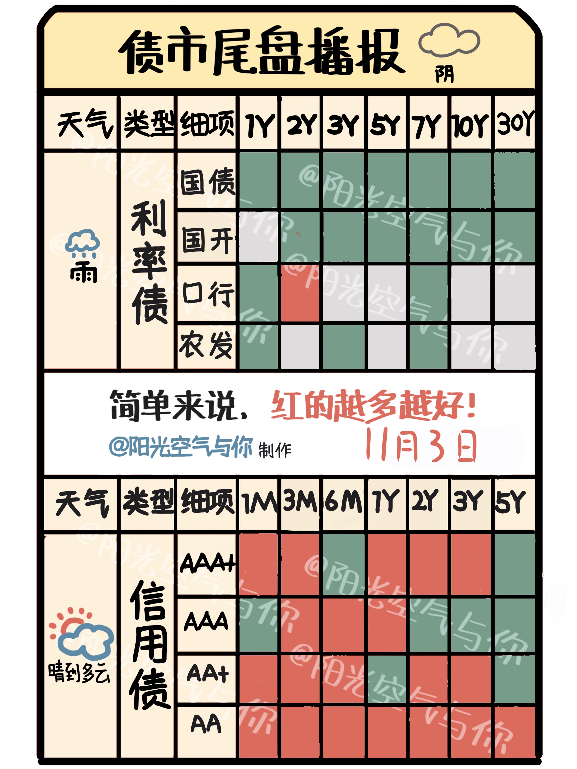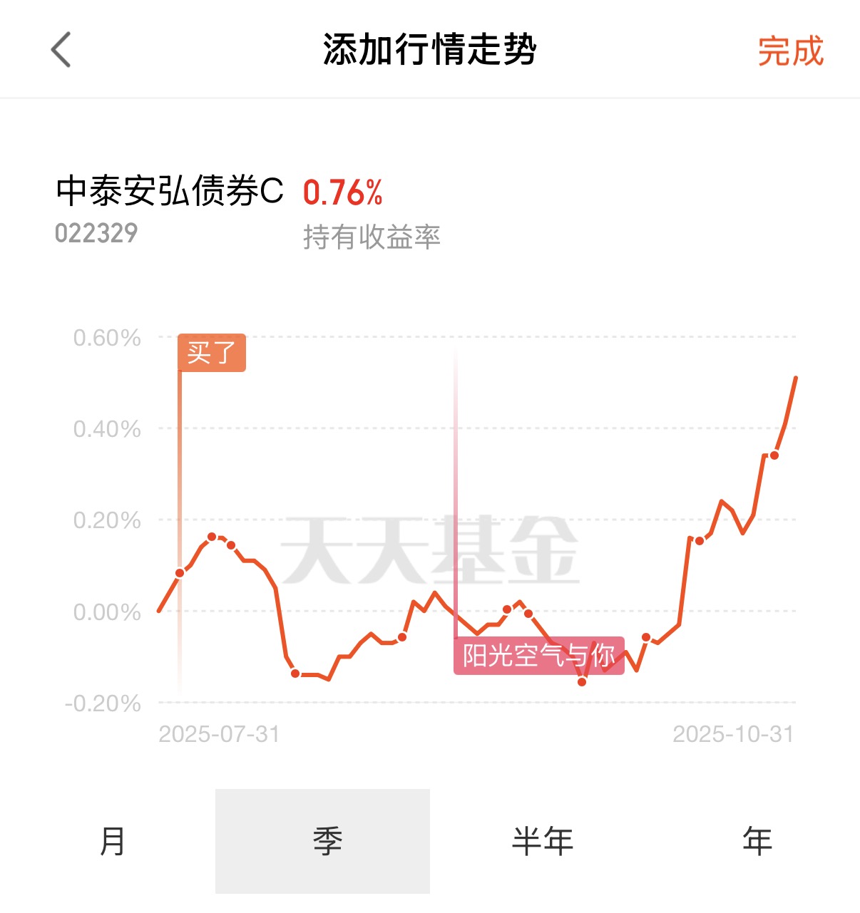 基金吧:$中泰安弘债券C(OTCFUND|022329)$、$中泰安弘债券A(OTCFUND|021429)$、$富国双利增强债券C(OTCFUND|012747)$、$富国双利增强债券A(OTCFUND|012746)$、$富国久利稳健配置混合E(OTCFUND|019370)$、$富国中债7-10年政策性金融债ETF发起式联接E(OTCFUND|019596)$、$华泰保兴安悦债券C(OTCFUND|020741)$、$方正富邦鸿远债券C(OTCFUND|015909)$、$南方中债7-10年国开行债券指数E(OTCFUND|013594)$、、$富国优化增强债券E(OTCFUND|018980)$。#11月基金投资策略##选基攻略##操作笔记#、#好基已就位#