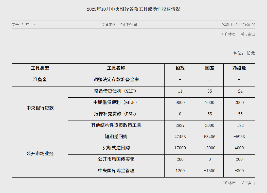其次,央妈公告:“11月5日将开展7000亿元买断式逆回购操作,期限3个月”,这周五则有7000亿元买断式逆回购到期,所以是完全对冲了。