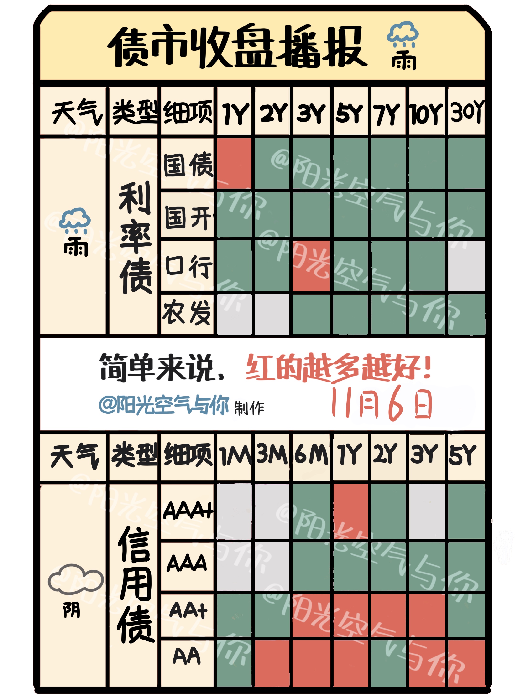 个人债基策略:《11.6债市两点半丨利率债雨势扩大,逢调买机?加减仓提醒! 》(点击蓝字可阅读)