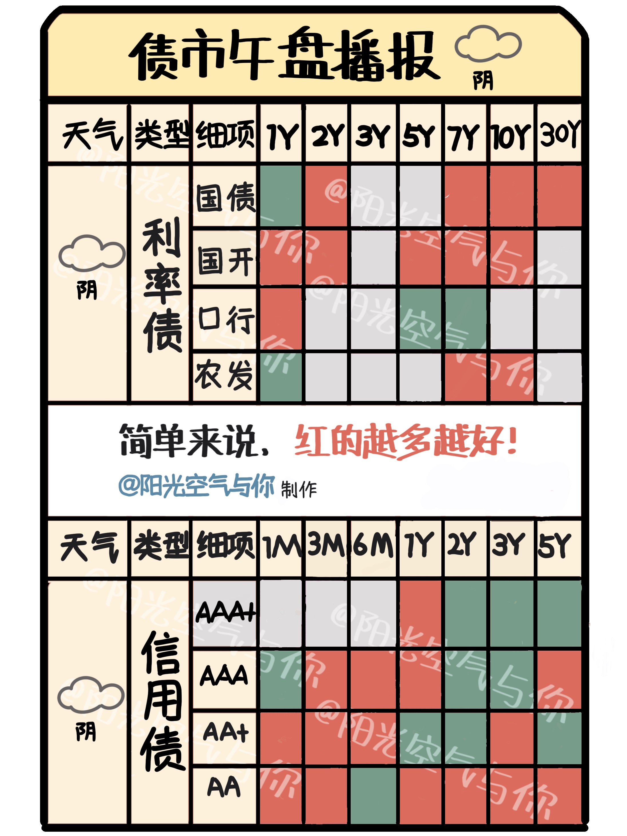 今天债市也算是低开高走了,整体债券盘面虽然不强,但是也算过得去。正如周日债市展望聊的,债市上有顶下有底,延续窄幅震荡为主,需要等待新的变量推动变化。更多债市分析、债基操作,14点30分左右尾盘再聊。