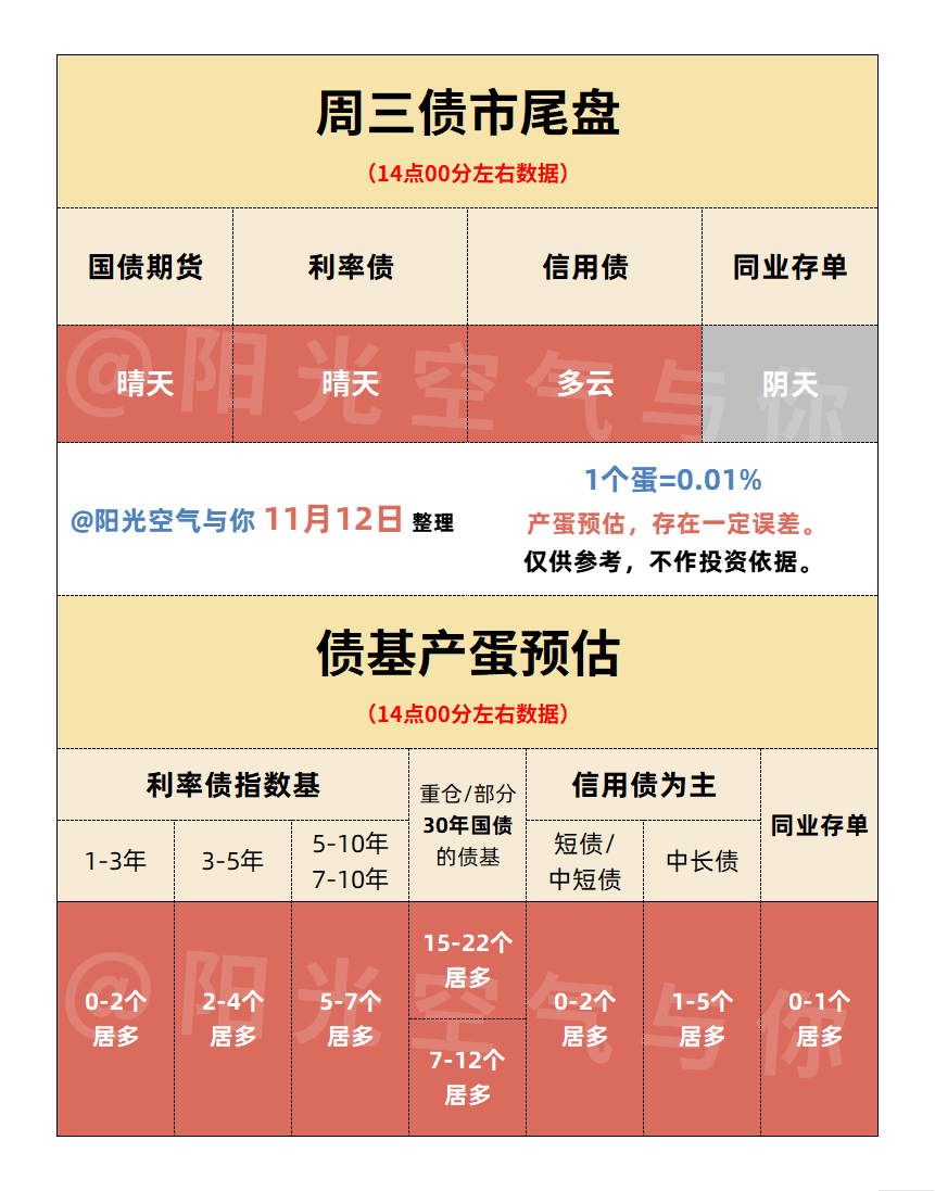 尾盘产蛋预估:重仓30年国债基金有望15-22个蛋,纯债基金小产蛋,混债基金预估碎蛋多一些(上证指数下跌0.16%,中证转债下跌0.53%)。17点30分左右还有一次债基收盘预估。