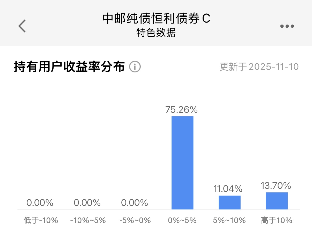 另外,天天基金数据显示:持有用户收益率100%正收益,甚至还有13.70%的用户收益率高于10%,持有体验确实非常好。趁着今天可转债行情偏弱,个人再加一些。