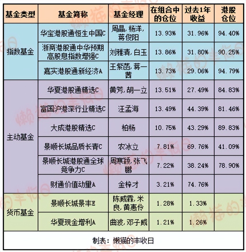 有细心的小伙伴可能发现了,组合买的并不全是港股基金,“财通价值动量”不持有港股,“景顺长城品质长青”的港股仓位才41.09%。