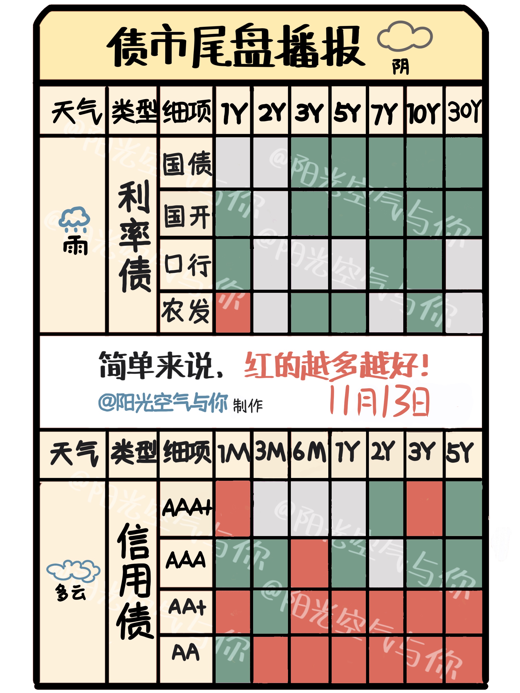 (1)昨天跟大家聊过了2026年降息预期、公募基金赎回费率新规情况、以及即将公布了10月金融数据。今天债市偏弱,主要还是股债跷跷板的原因,其实并没有其他更多的利空因素,而且10年期国债活跃券收益率上行幅度也不超过1BP,虽然长端利率债的短期趋势有点反复,但是债市大概率只是正常震荡阶段,继续等待变量落地。
