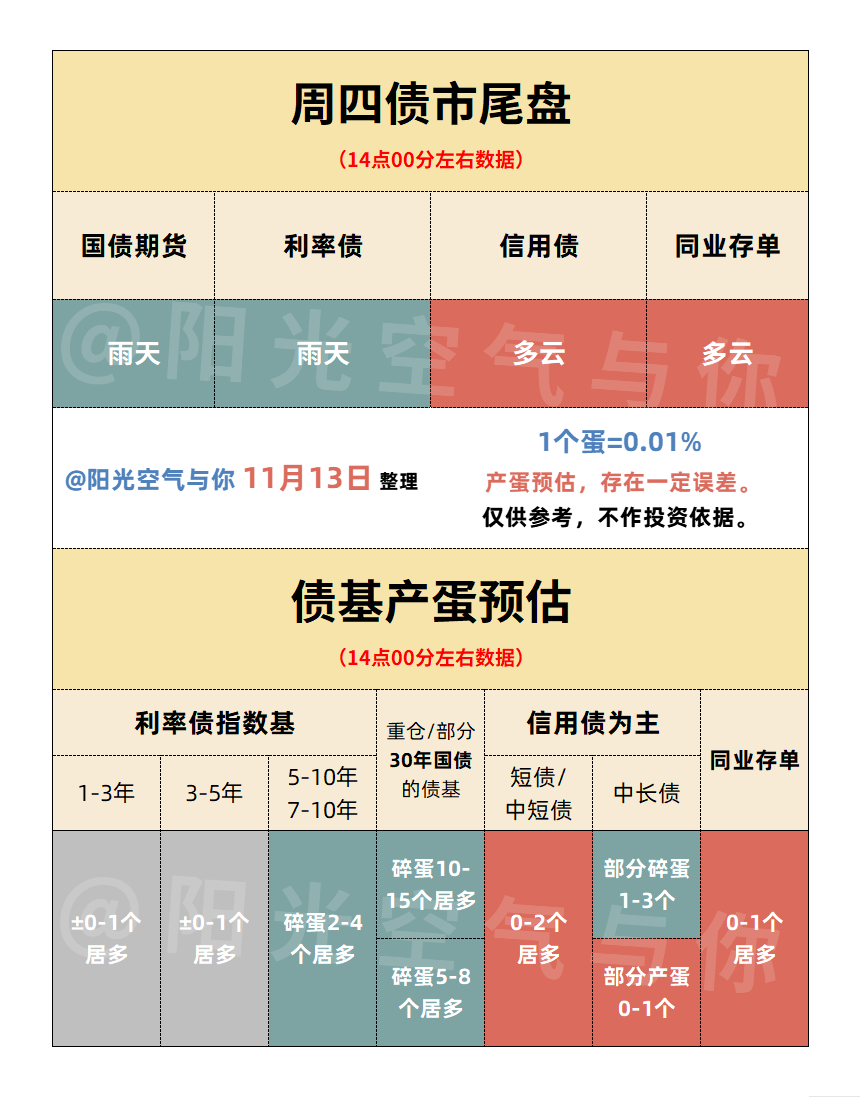尾盘产蛋预估:重仓30年国债基金碎蛋多一些,其他纯债都是小涨小跌,混债基金多数产蛋(上证指数上涨0.56%,中证转债上涨0.97%)。17点30分左右还有一次债基收盘预估。