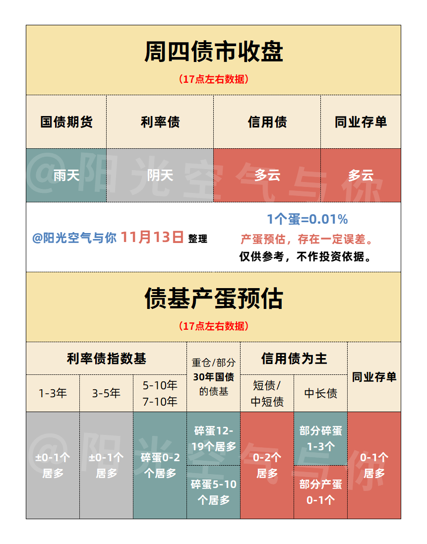个人债基策略:《11.13债市两点半丨利率债窄幅震荡,配置思路?加仓这个! 》(点击蓝字可阅读)