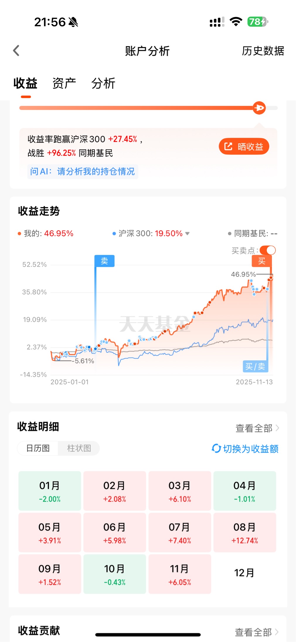 今年只有三个月是绿的,胜率超过了7成,实属投资大年了。不论维度是日/周/月,只有大盈小亏才能最终积累出更厚的安全垫,继续坚持自己的坚持,打造更稳定的投资结果